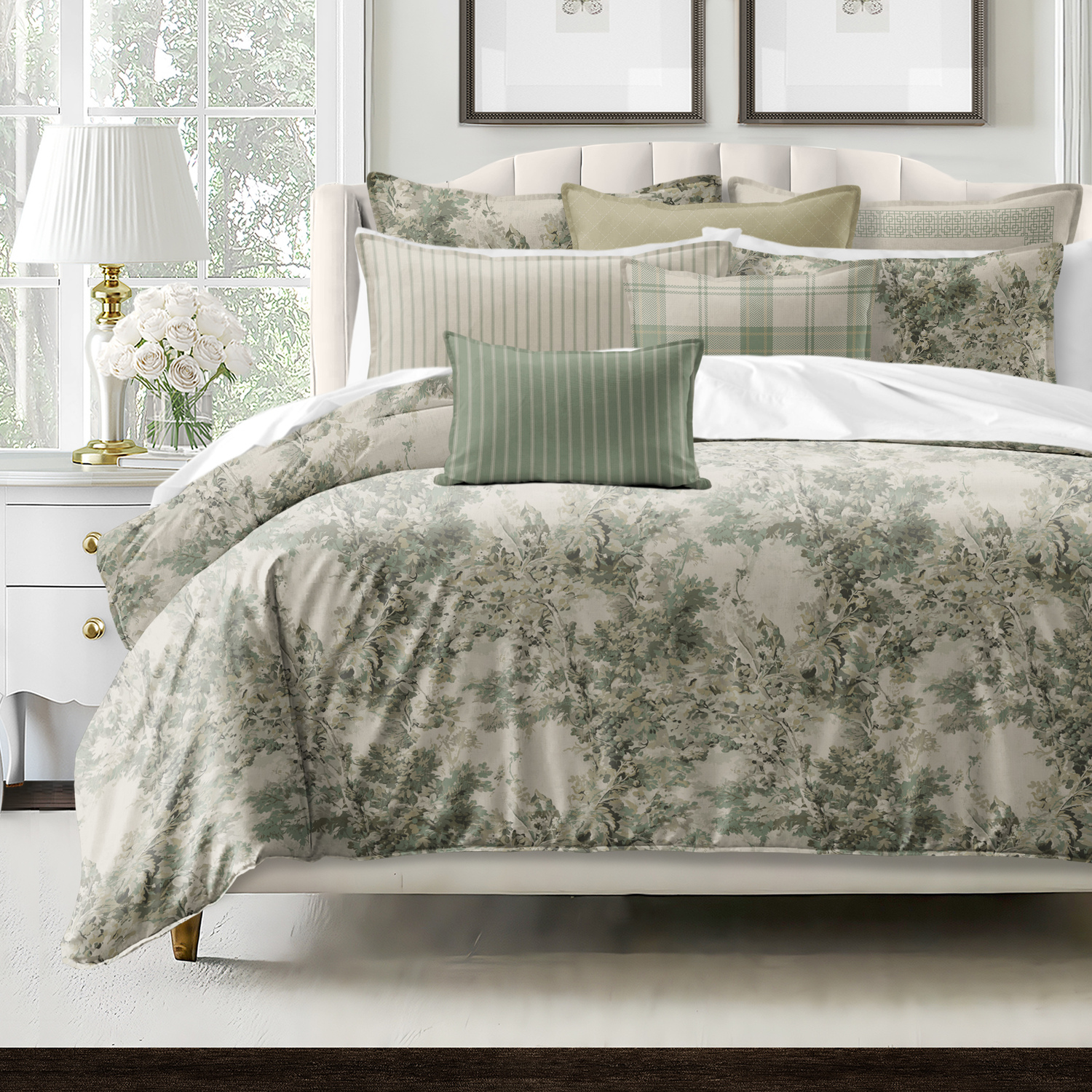 Dolce Spring Green Complete Designer Duvet Cover 8 Piece Set Super Queen