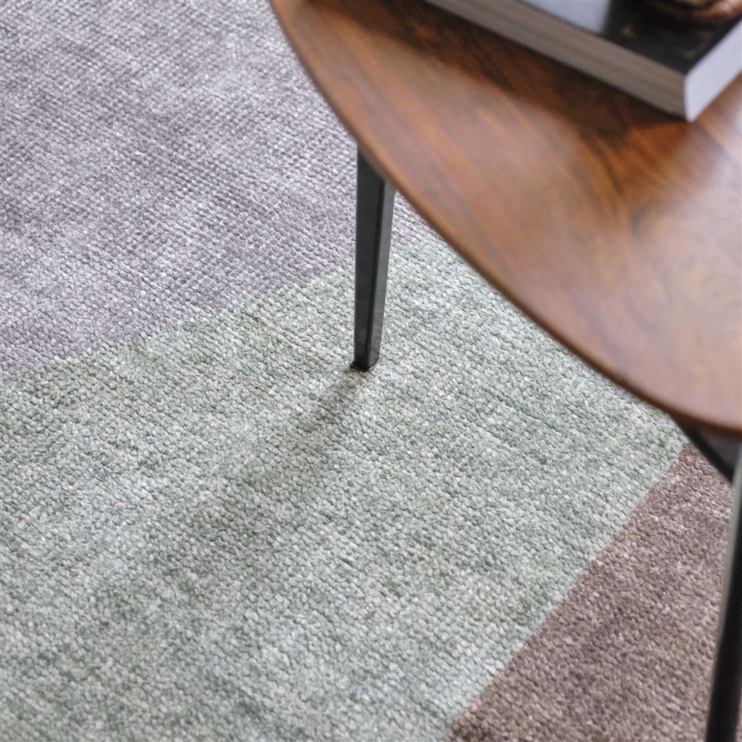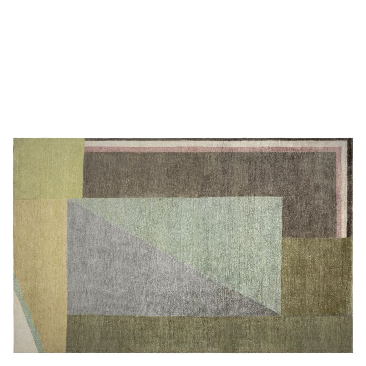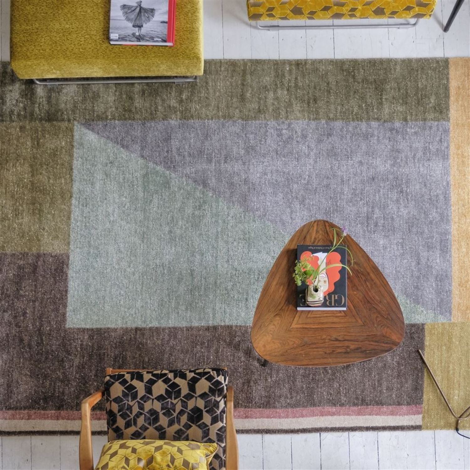 Alphonse Moss by Designers Guild is a modern delight. This contemporary style features warm hues and a bold graphic style. Hand Knotted. Pile is 100 percent viscose, backing 100 percent cotton. Available in your choice of sizes.