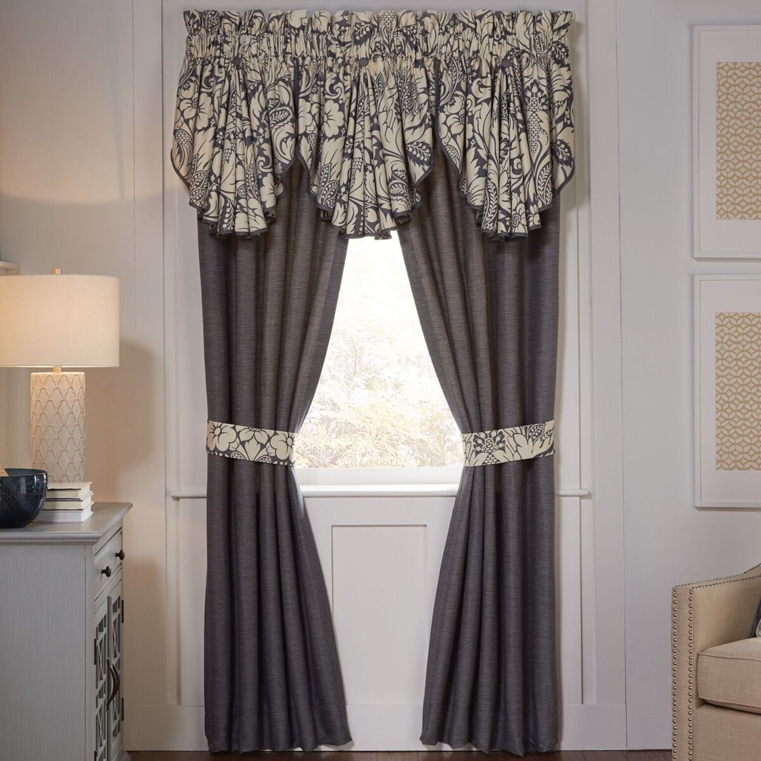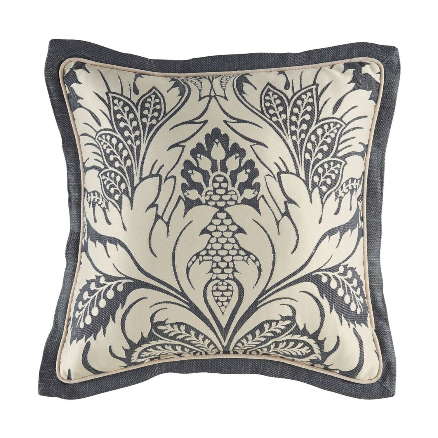 Auden by Croscill Home Fashions features a stunning large damask pattern in Ecru atop a deep denim ground of a stunning an elegant contrast. Auden is offered in Comforter Sets in size Queen, King, and California King. Sets include the Comforter, 2 Pillow Shams, and Bedskirt. Complete the look of your room with accessory pieces which include Drapery Panels, Valance, Euro Shams, and 3 Decorative Pillow options. Auden is made from 100% Polyester and is recommended dry clean only.