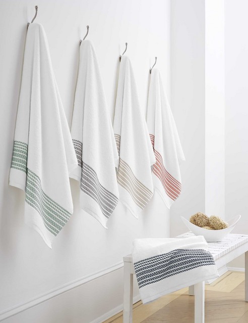 Baja by Kassatex Fine Linens are made in Portugal using combed cotton and finished with a unique arrow detail border in your choice of colors. These towels offer a sewn in hanger loop. Baja are available in bath, hand and wash towels. Machine wash cold, tumble dry low-medium. Do not bleach. To preserve color please avoid cleansers with harsh chemicals including Benzoyl Peroxide.