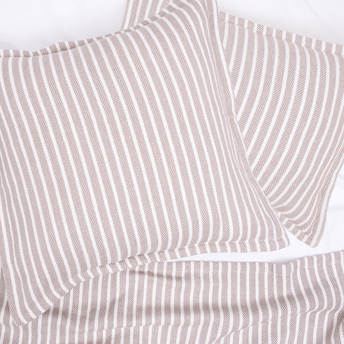 Bengal Dune by carol & frank is a stripe with personality. The shade of neutral is striking against the light background creating a classic look with a modern twist. The stripes are composed of small lines adding a fun accent. The Bengal Dune collection offers blankets in twin through king sizes, standard and euro pillow shams, decorative square cushion, and decorative throw. Bengal Dune is made of 100 percent cotton and machine washable following manufacturers directions. Bengal is also available in other colors to mix and match!