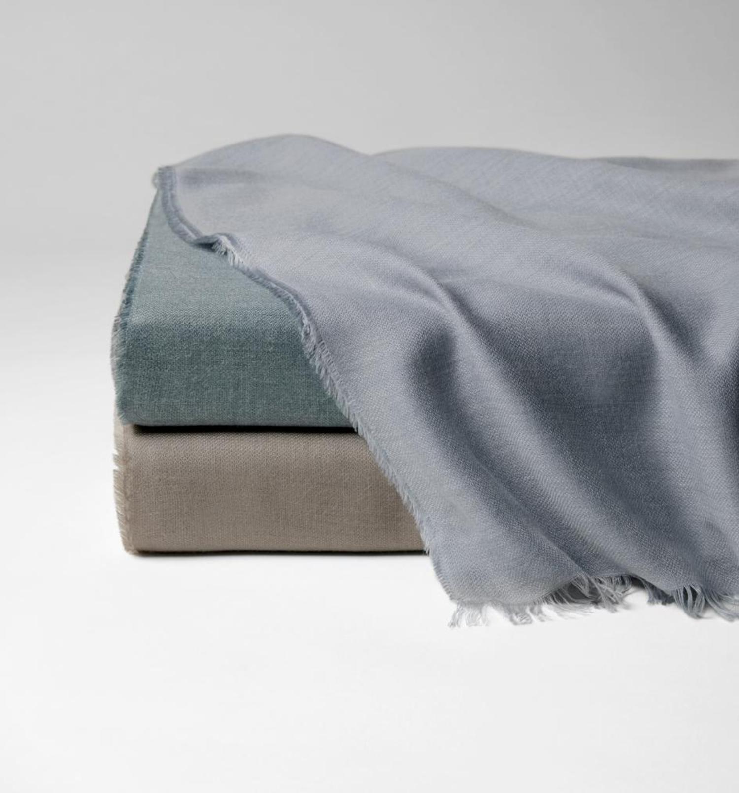 Bosa Bed Scarf by Sferra Fine Linens is a truly spectacular accent for your gracious home. The wonderful hues blend beautifully as the three shades transition with elegance. The Bosa features a wonderful ombre effect with fabulous softness. Bosa is made of 50 percent Modal and 50 percent polyester, finished with eyelash fringe. Bosa is dry clean care. Made in Italy.