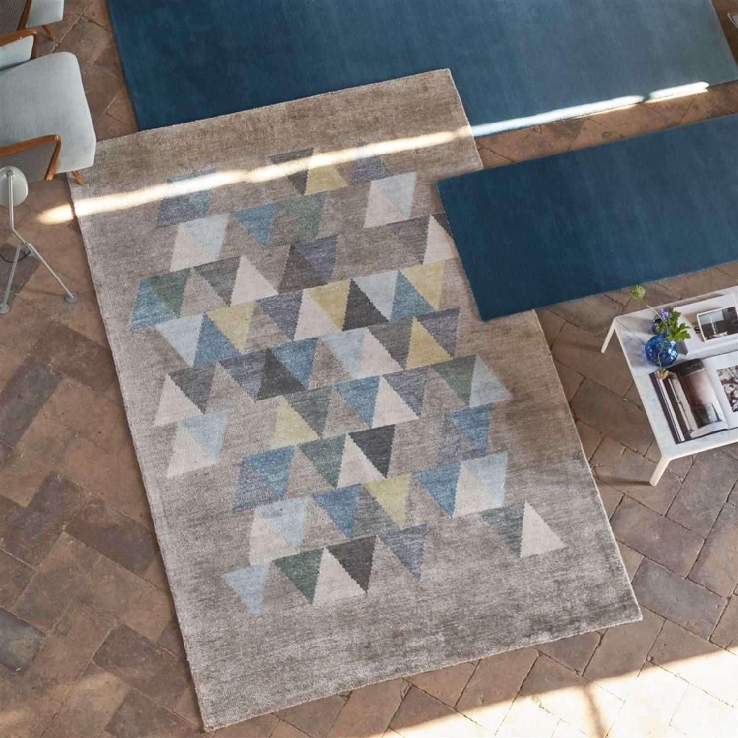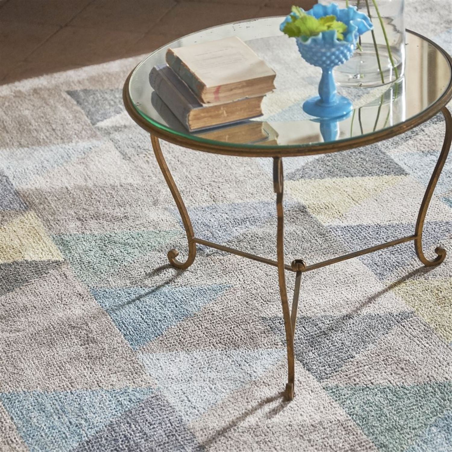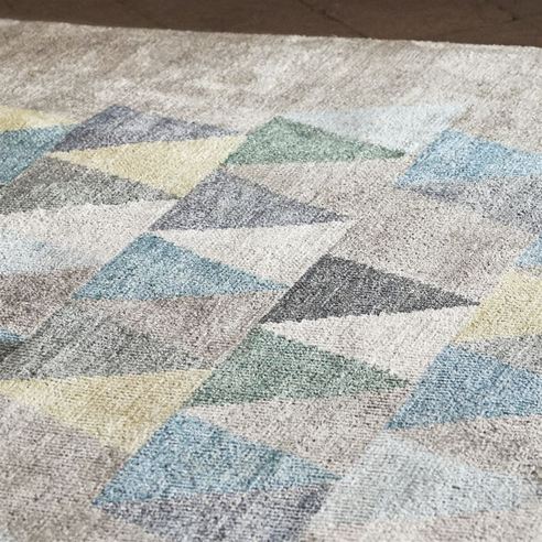 Dorsoduro Celadon by Designers Guild is a modern style with colorful additions atop a neutral backdrop. This contemporary design features cool shades for today's decor styles. Dorsoduro Celadon is available in your choice of sizes. Hand Knotted. Dorsoduro Celadon features pile of 100 percent Viscose, and backing of 100 percent cotton. Contact us for custom sizes!