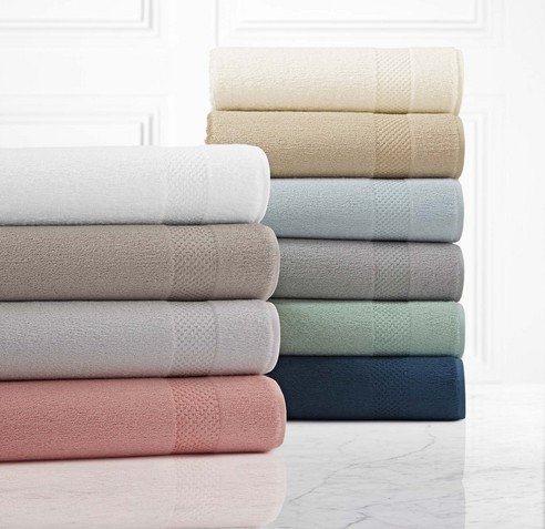 Elysee Towels by Kassatex Fine Linens available in 10 color choices the Elysee towel is 75% Egyptian Cotton, 25% Modal Pile. These towels are super soft and absorbent. The bath towel features a sewn in hanger loop. Machine wash cold, dry on low-medium heat, do not bleach, and avoid cleansers that contain harsh chemicals including Benzoyl Peroxide