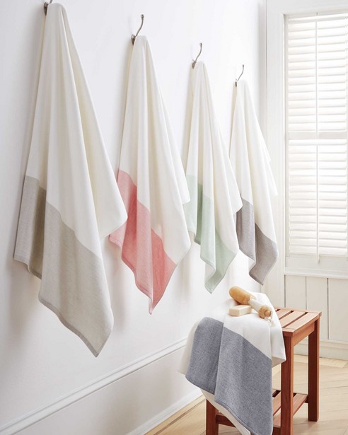 Greenwich by Kassatex Fine Linens feature a trendy color block design in 5 different color options these 100% combed cotton towels are perfect for look and feel. These towels offer a sewn in hanger loop and are available in bath, hand and wash towels. Machine wash cold, tumble dry low-medium. Do not bleach. To preserve color please avoid cleansers with harsh chemicals including Benzoyl Peroxide.