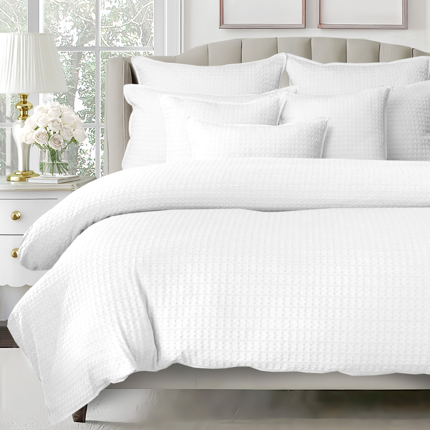 Honeycomb Waffle White Complete Designer Duvet Cover 8 Piece Set King
