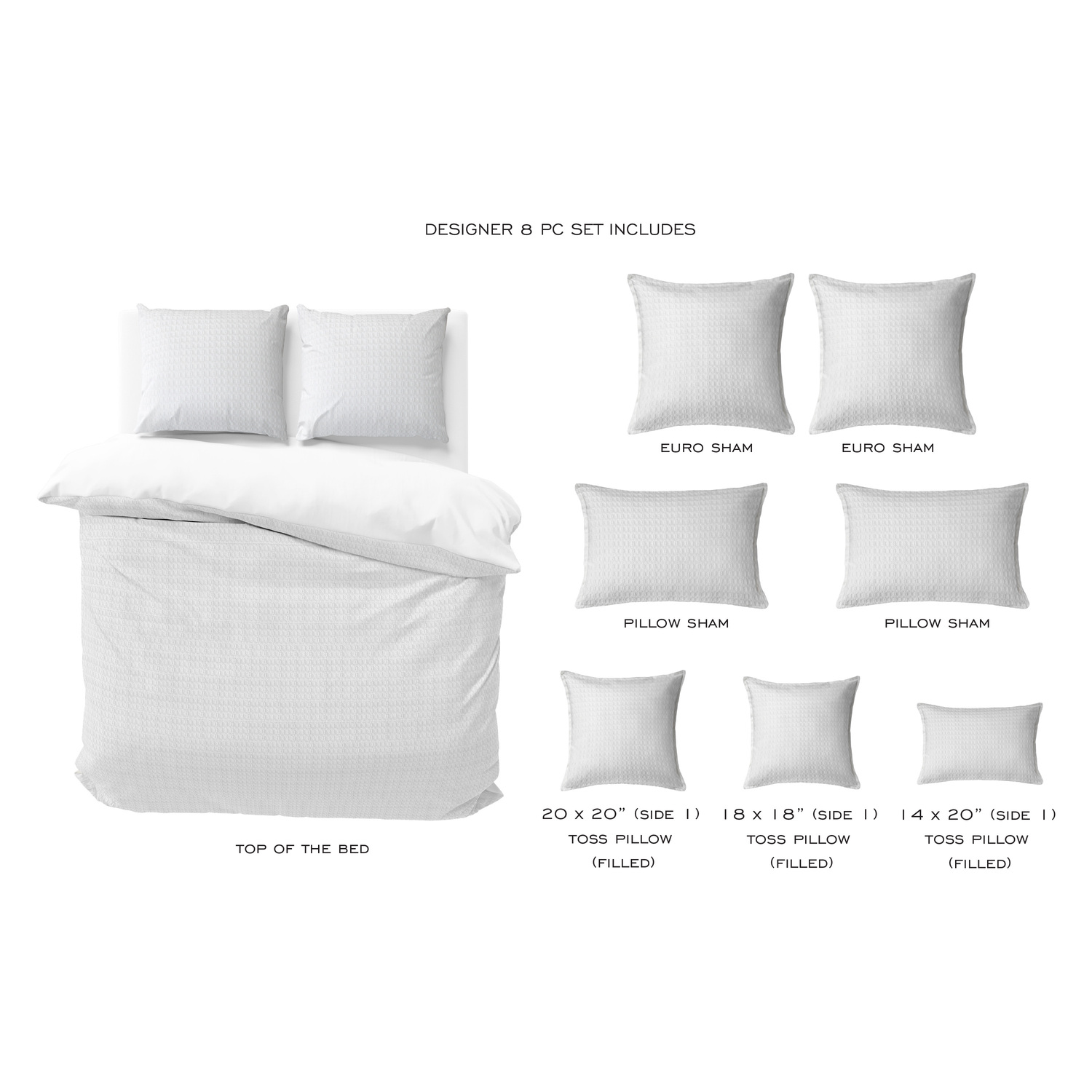 Honeycomb Waffle White Complete Designer Comforter 8 Piece Set Queen