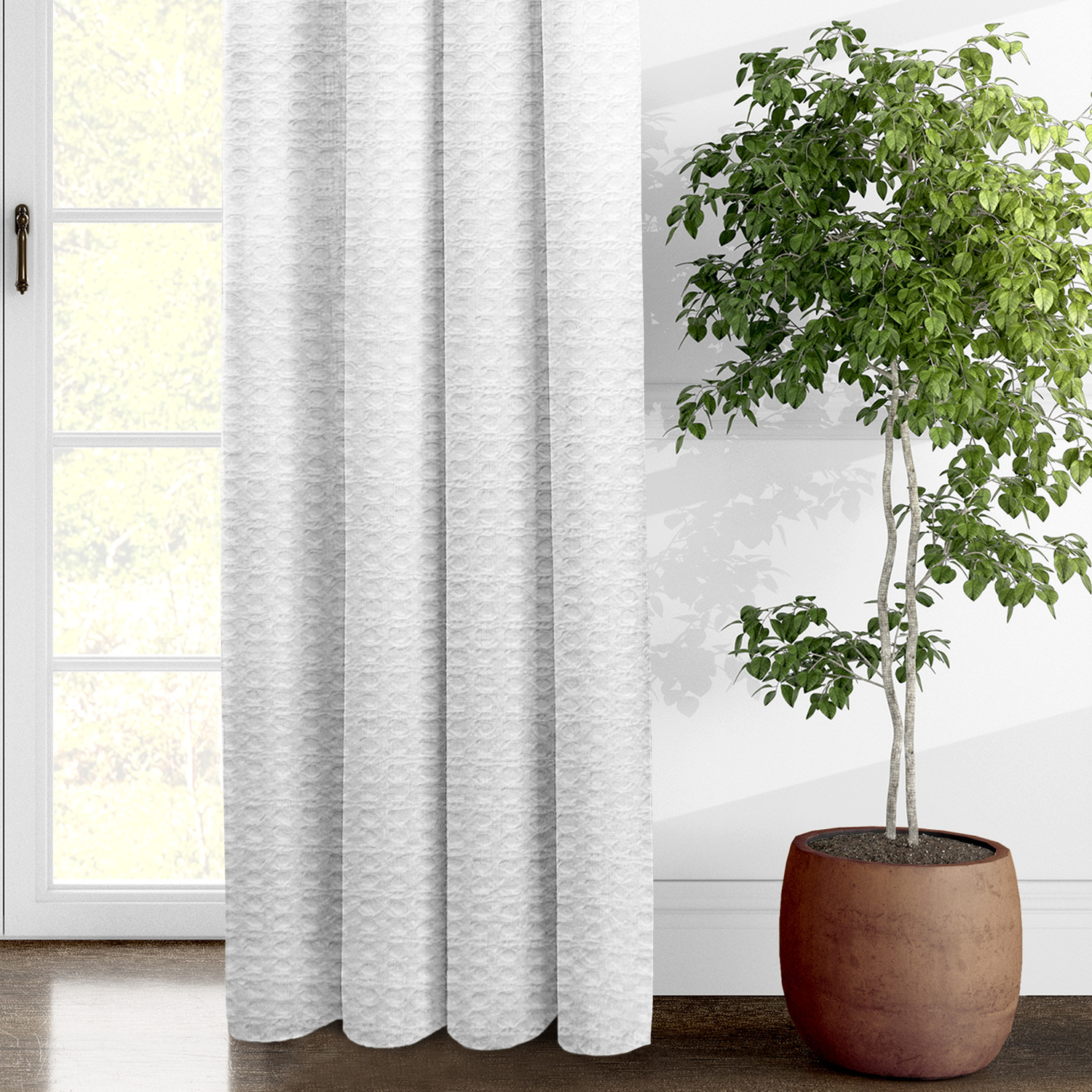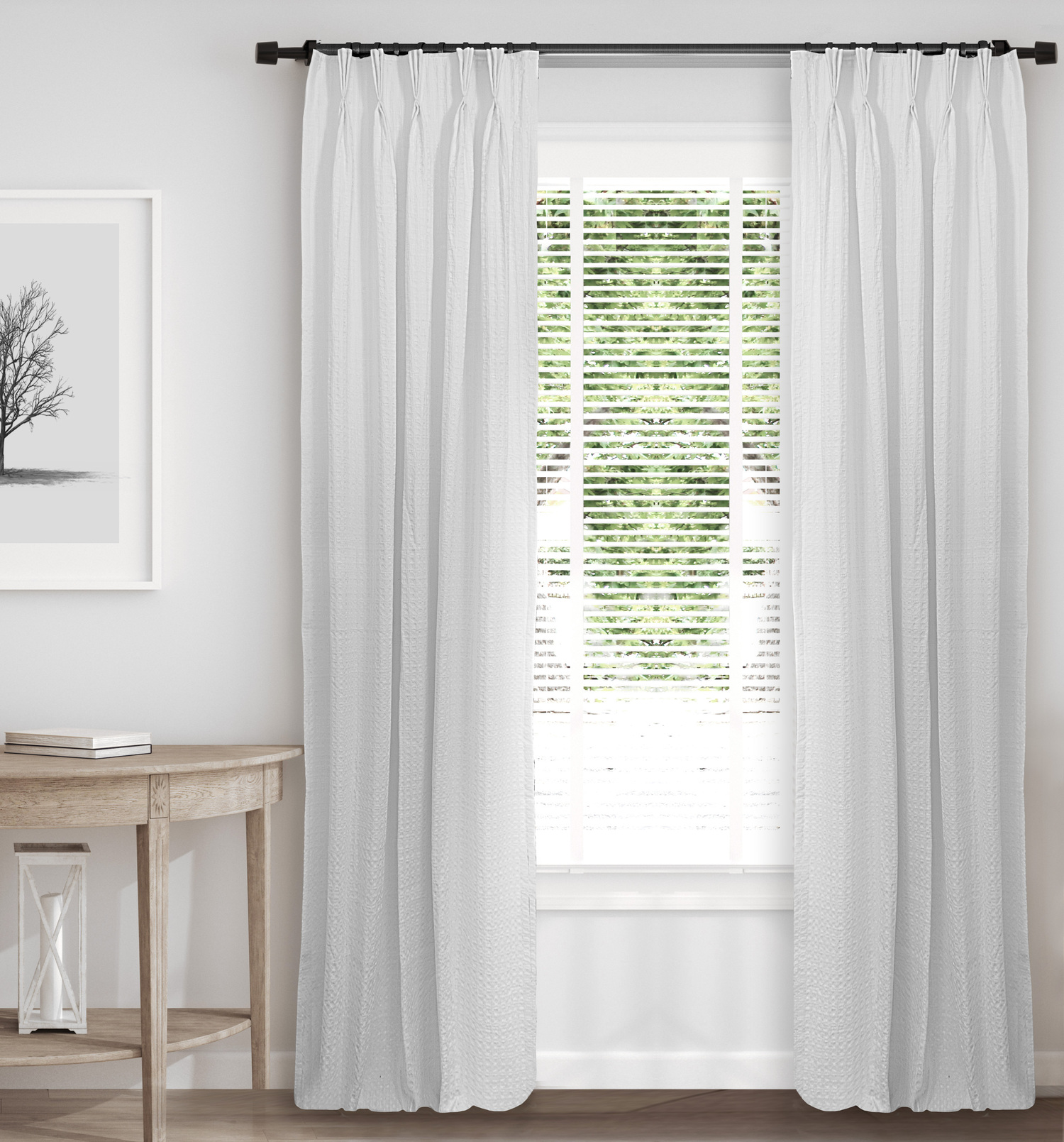 Honeycomb Waffle White Pinch Pleat Drapery Panels (Includes 2 Panels)