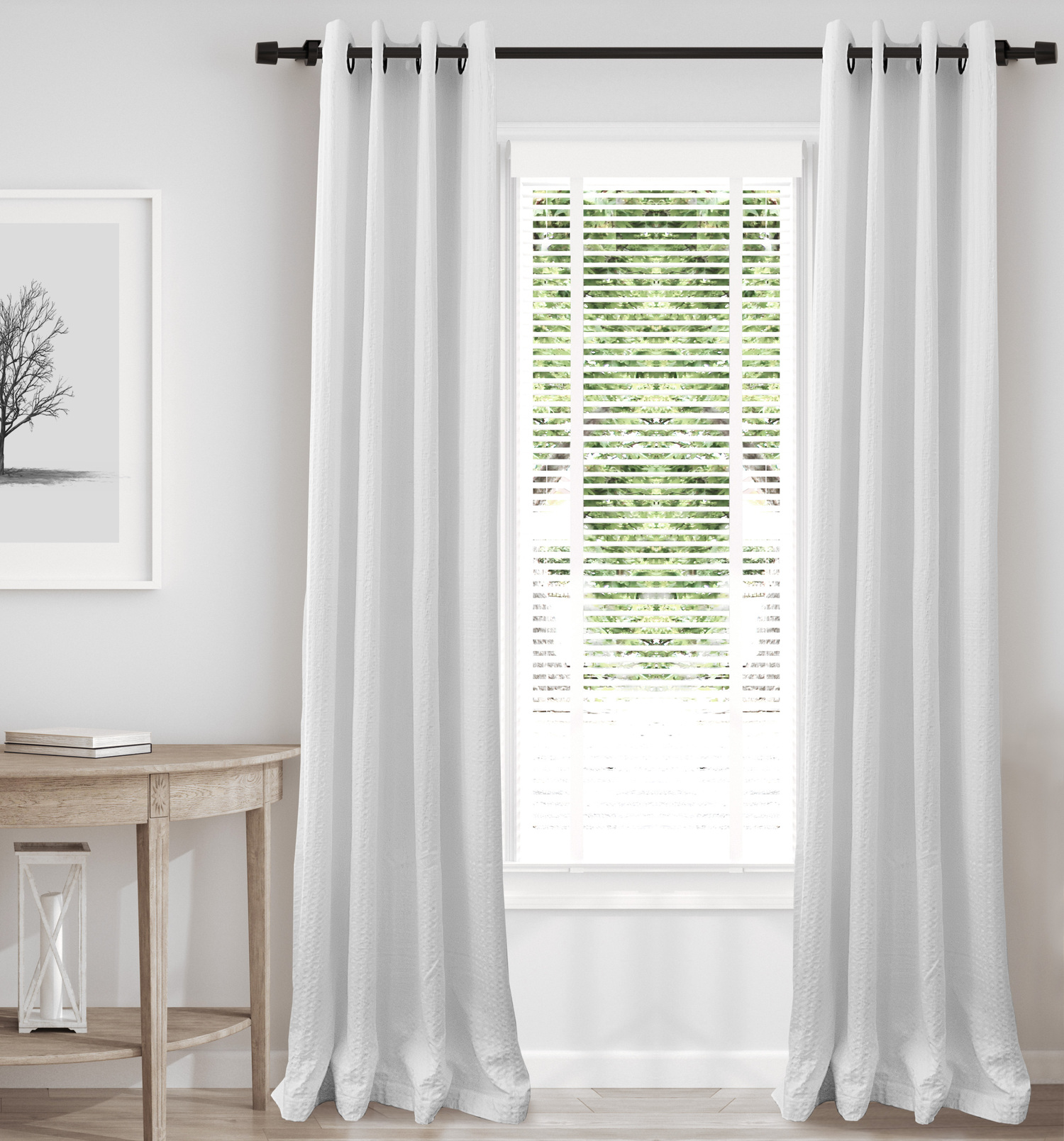Honeycomb Waffle White Grommet Top Drapery Panels (Includes 2 Panels)