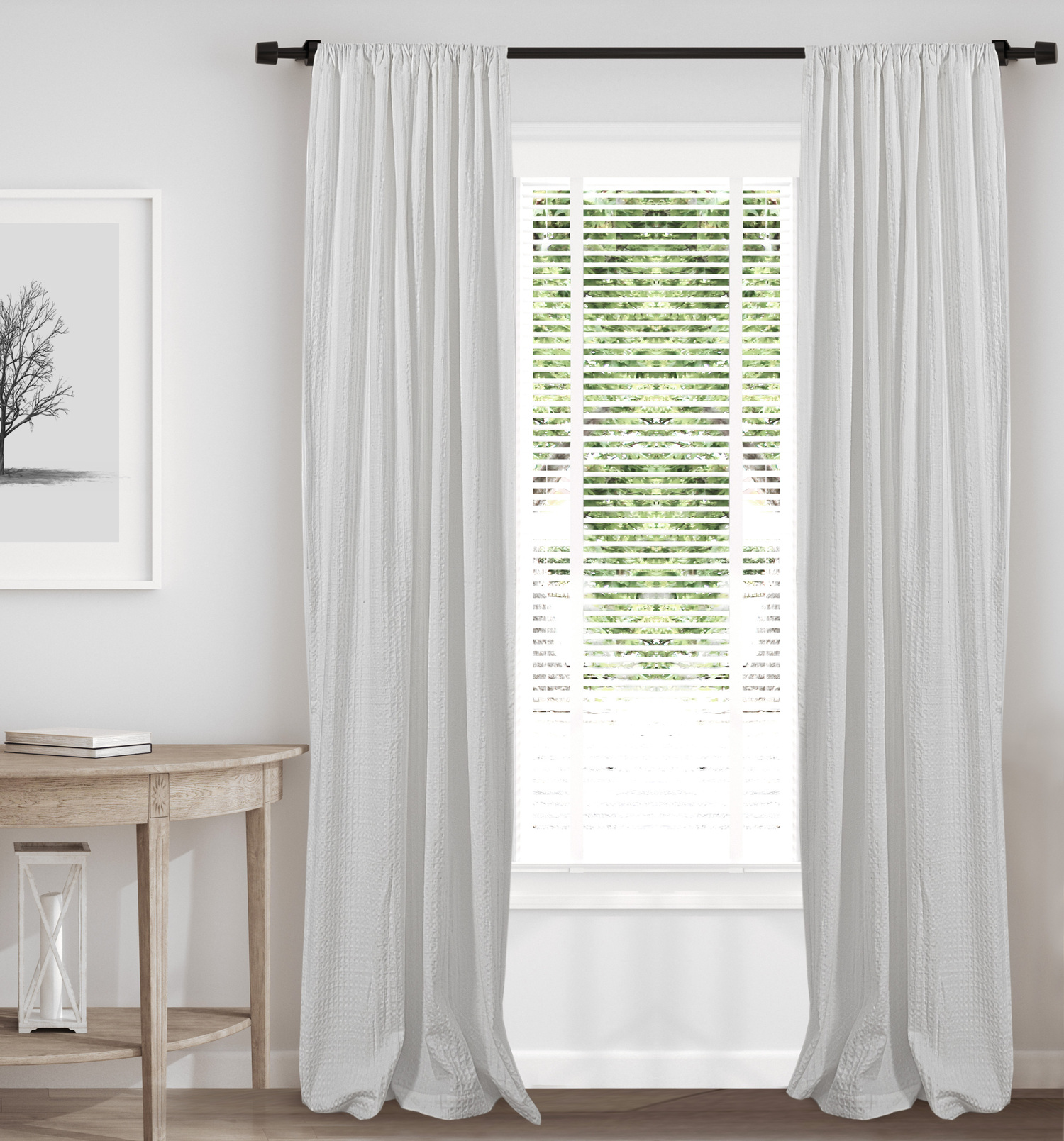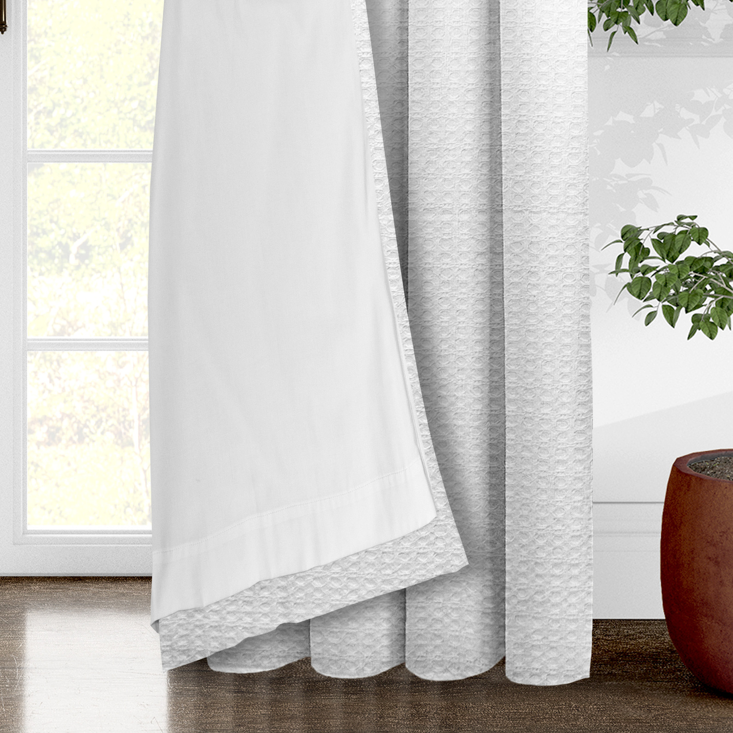 Honeycomb Waffle White Pole Top Drapery Panels (Includes 2 Panels)