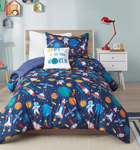 Jason Outer Space Comforter Set Twin Set Includes: 1 Comforter: 66"W x 86"L, 1 Standard Sham: 20"W x 26" L + 1"D, 1 Pillow: 16"W x 16"L $82.50 USD