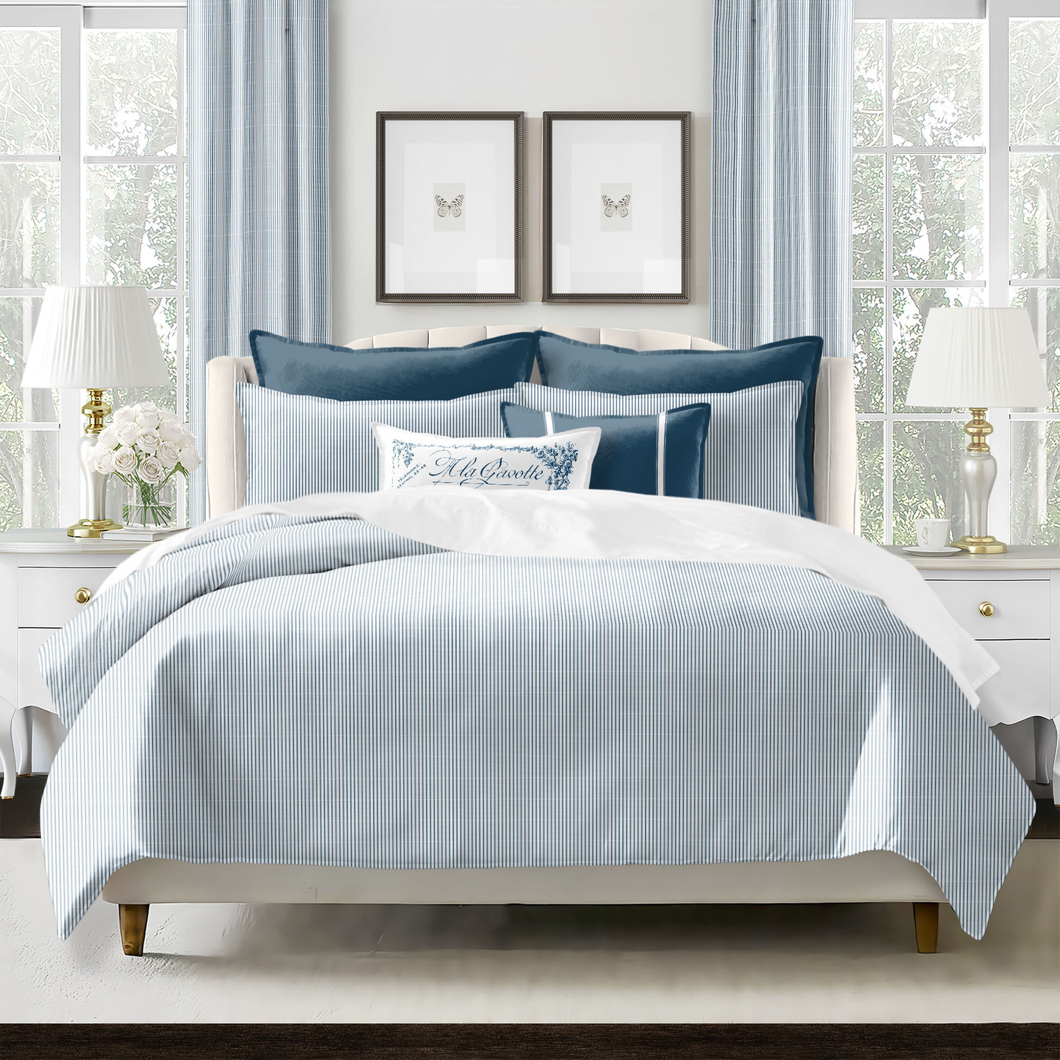 Jaxon Stripe Indigo Queen Duvet Cover 3PC Set