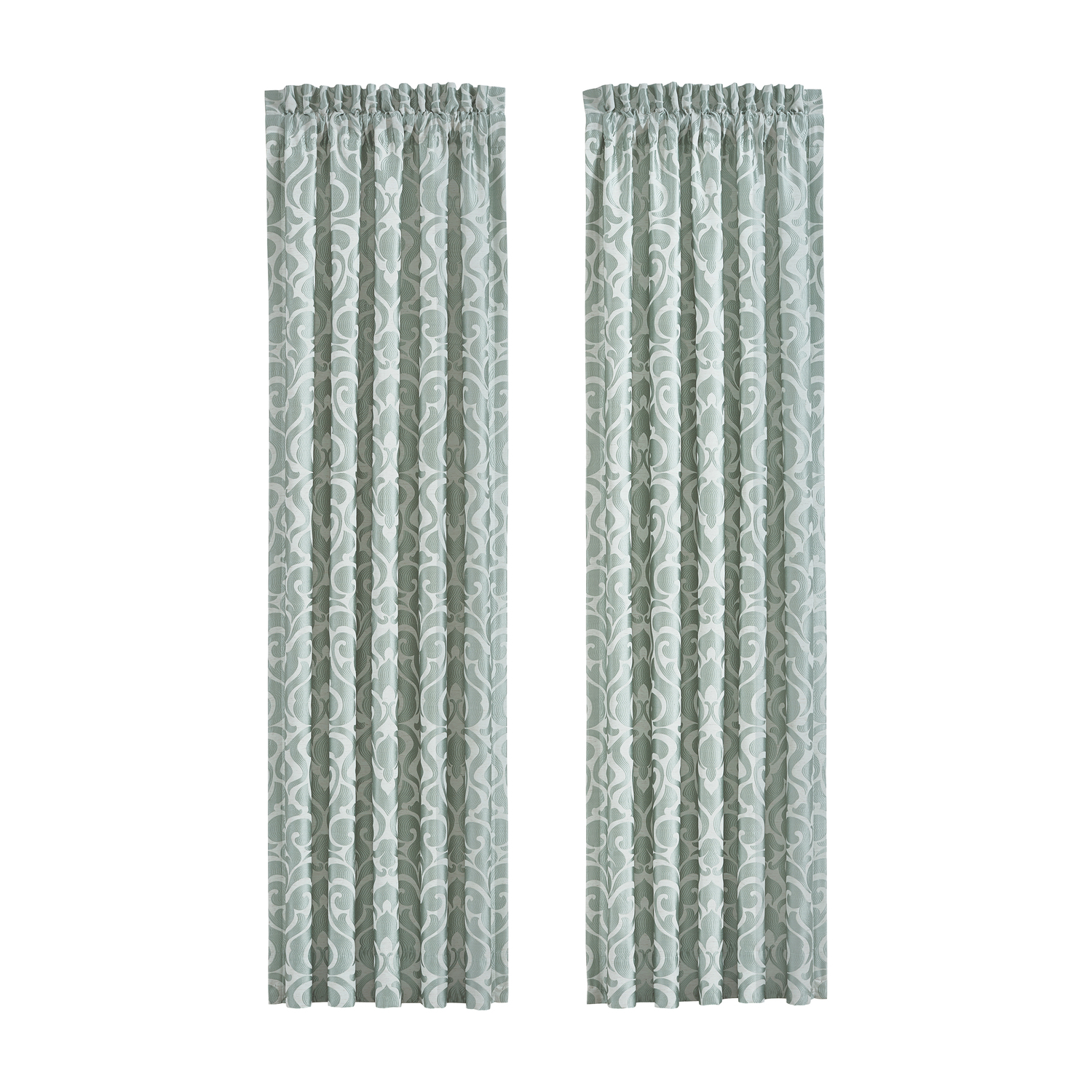 Lombardi Spa by J Queen New York presents a beautifully designed scroll medallion with a wonderful appeal. The soft and serene shade of the Lombardi Spa will instantly create a sophisticated and restful retreat. Lombardi Spa offers comforter sets for your selection in sizes from Queen to California King, which include comforter, tailored bed skirt, and two pillow shams. Add height and elegance instantly with the addition of the euro shams which feature a mitered design. The addition of the unique decorative cushions complete the bedding design perfectly. Your choice of the tufted round cushion, square cushion, and lovely boudoir cushion. The available drapery waterfall valance and drapery panels will cover your windows with the same rich style of the bed! Please note: three valances have been used in photo to create this look. Made of 97 percent polyester, and 3 percent linen. Dry Clean.