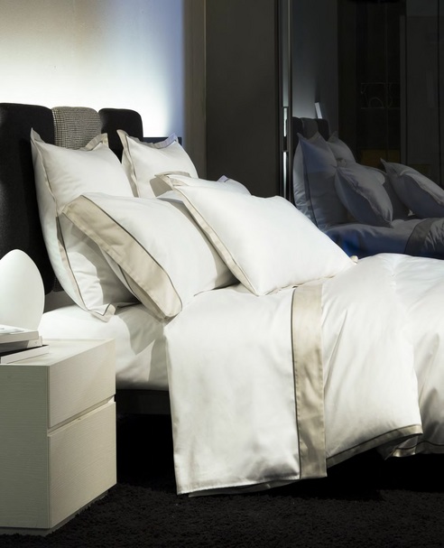 Luna by Signioria Firenze Bedding made of a 600TC Sateen Italian woven cotton this bedding is available in 3 color options. Soft and elegant the detail of the colored border with a finished embroidered line makes this bedding perfect for any space. Luna is available as separate pieces. The Duvet Cover comes in sizes Queen and King/California King, Pillow Shams in standard, king, and euro, Flat Sheet in Queen and King/California King, Fitted Sheet in Queen, King, and California King, and Pillow cases in standard or King. Luna is machine washable.