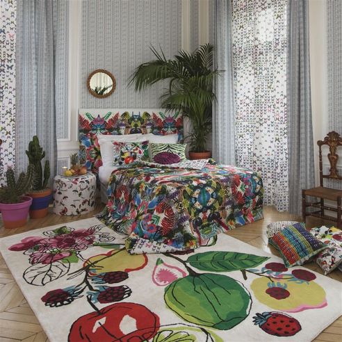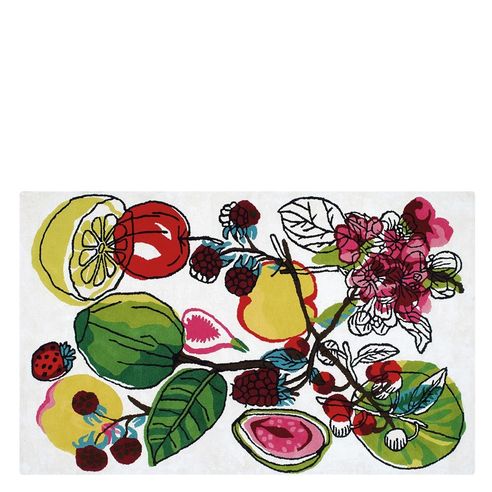 Manaos - Perroquet by Designers Guild (Christian Lacroix) features a modern interpretation of a fruit still life. This rug is made using 60% Viscose and 40% Wool. The vibrant color shades adorn the fruit and floral in stunning fashion. Manaos - Perroquet is offered in 2 stock sizes however it can be custom order in the prefect size for your space. Manaos - Perroquet has a maximum dimension of 16'4" x 29'5".