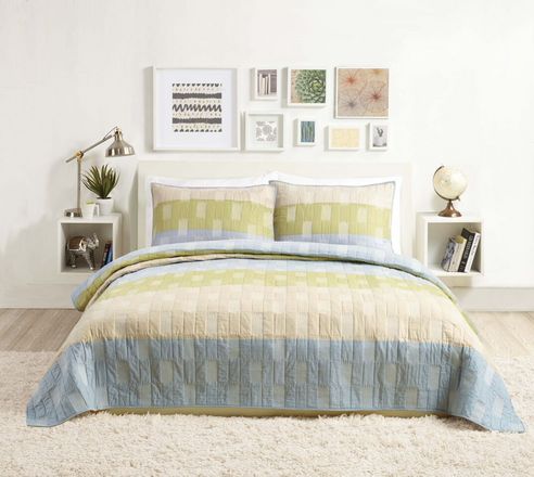 Oliver by Presidio Square will update your space with its modern geometric stitching and its calm shades of blue, green, and tan. Oliver is available in Quilts size Twin through King and Standard Size pillow shams. Oliver is Cotton faced with a Polyester backing and is machine washable.