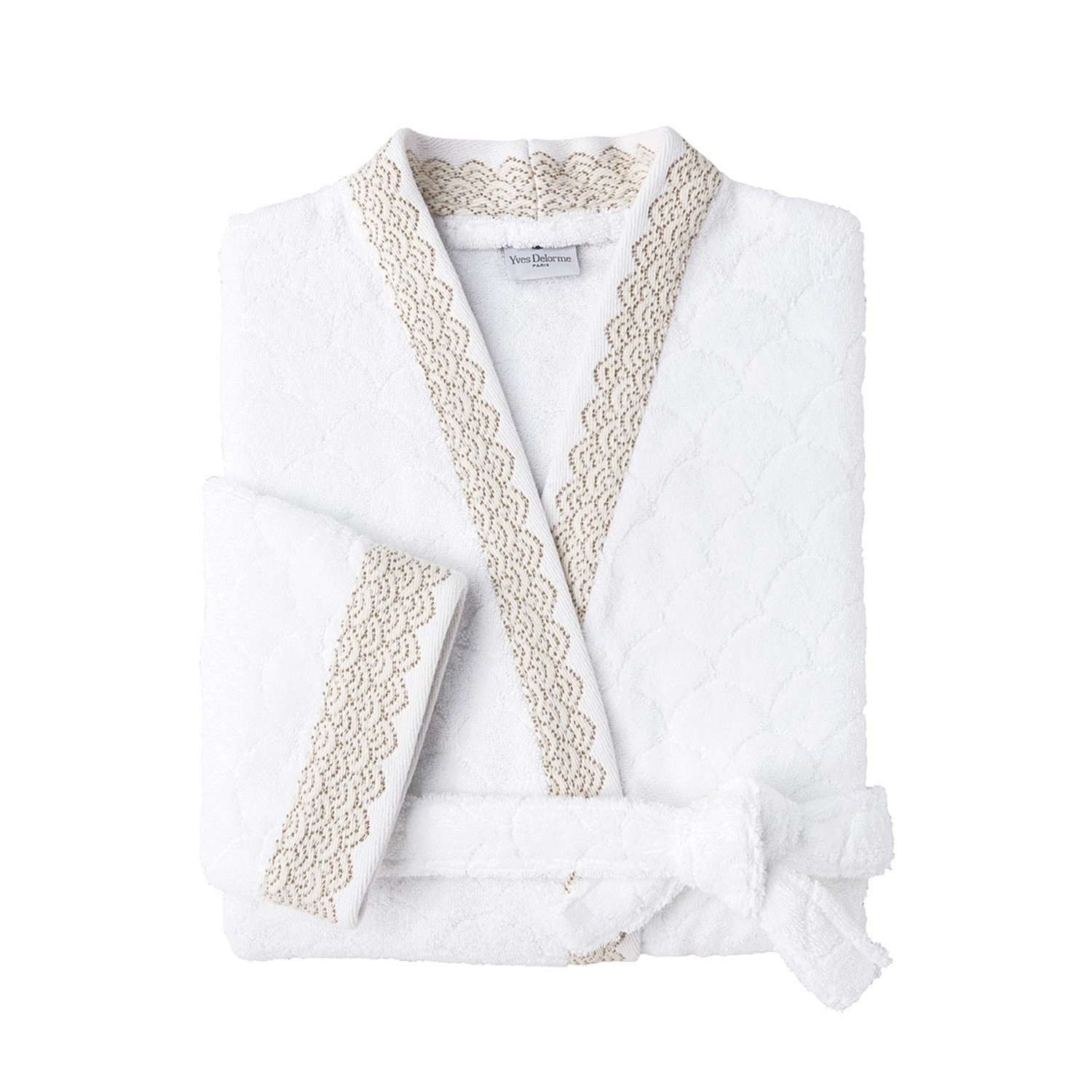 Ombrelle by Yves Delorme Paris is wonderously luxurious. Featuring the soft shade of Milk, the Ombrelle is captivating and is a beautiful modern neutral design with sophistication. Ombrelle is made of 100 percent cotton. The Ombrelle collection offers bath sheets, towels, guest towels, and robes. Machine washable following manufacturers directions. Yves Delorme Paris is a Special Order collection made in France.