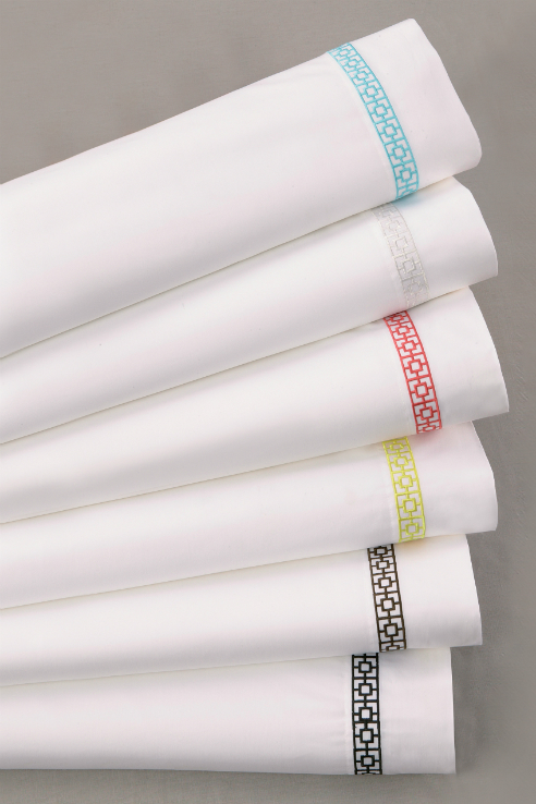 Palm Springs Block bed sheets by Trina Turk Bedding will complete any bed with a great touch of design flair. The pillow cases are finished block design at the end and the flat sheet has a line of the blocks at the top. The crisp euro shams feature a beautiful border of block design. Beautiful and available in your choice of four colors including white, black, coral, and turquoise the design accents the beautiful white cotton used for the pillow cases and sheets. The ideal addition and finishing touch to your Trina Turk Bedding bedding set.