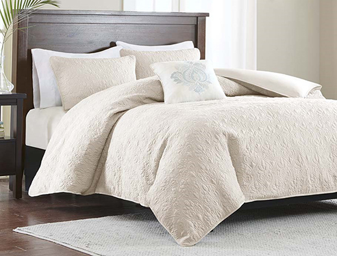 Quebec Ivory by Madison Park presents the bedding option that you have been seeking. Beautifully solid color, stitched design, straight edges and coordinating shams will complete your bedroom design. Quebec Ivory is available in your choice of bedding options. Bedding sets are available in sizes from twin to king. Machine washable following manufacturers directions.
