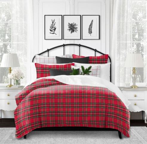 Royal Plaid Red Duvet Cover Set - Full/Double