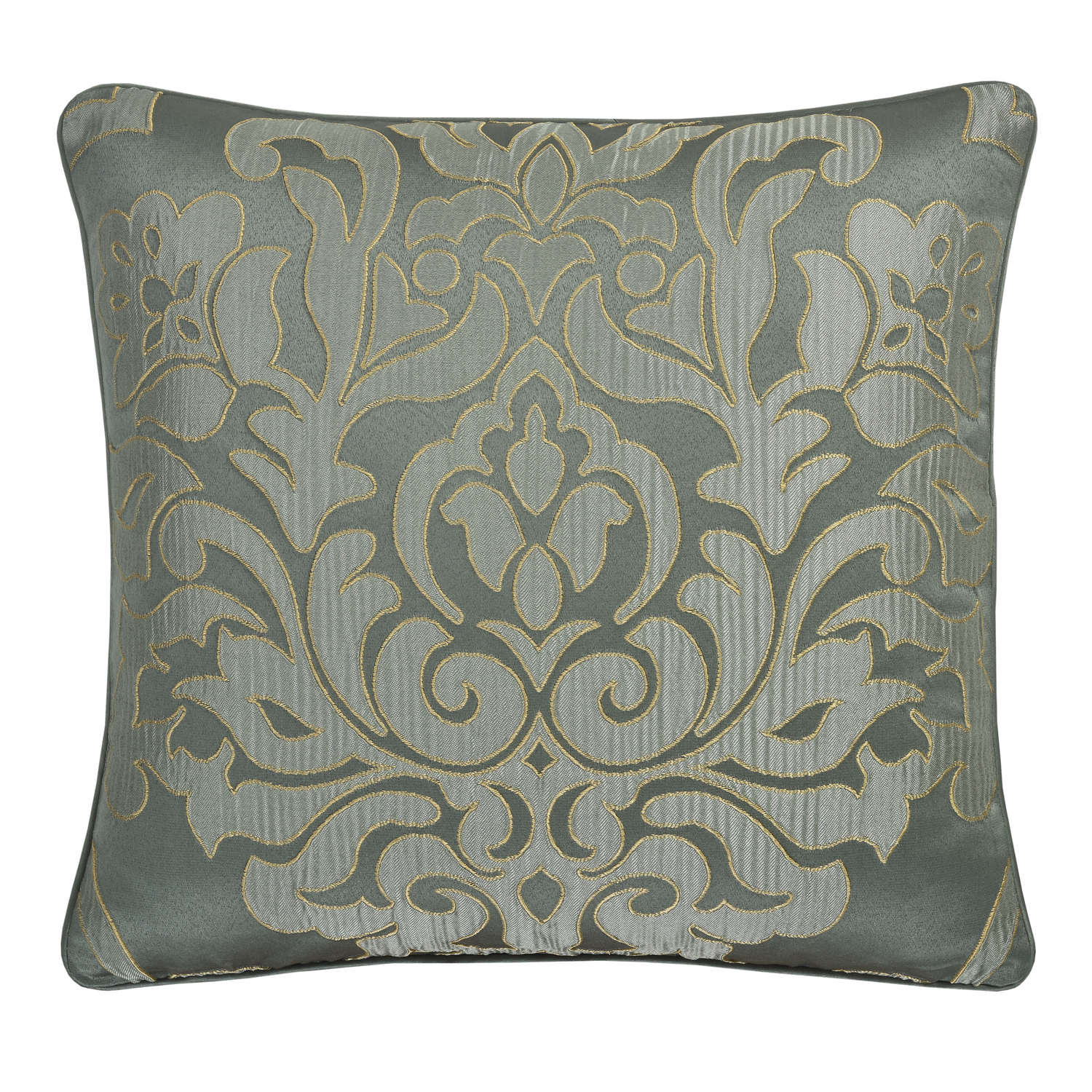 Santino by J Queen New York is striking with a sophisticated medallion set on a hue of jade. The large scale of the Santino medallion is regal and elegant to add a fashionable style to your bedding design. The Santino comforter and pillow shams are finished beautifully with a decorative piping treatment. The coordinated bed skirt completes the comforter set beautifully with its tailored style. Bedding sets are available in sizes from Queen to California King and include the comforter, matching pillow shams and bed skirt. Introduce the euro shams, which shown against the headboard, for a luxurious addition of dramatic style. Santino offers three decorative cushion styles for your choice to complete the top of the bed, including Square and Boudoir. The introduction of coordinating drapery panels and waterfall valances completes the bedroom beautifully. Santino is 100 percent polyester and dry clean care.