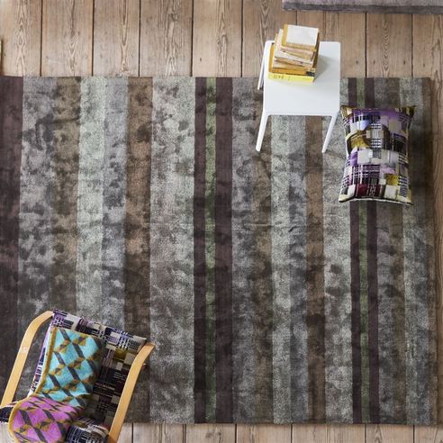 Tanchoi Graphite by Designers Guild is a wonderfully styled modern stripe design. This striking creation is a statement which adds personality to any room. Tanchoi Graphite is available in your choice of sizes. Hand Loom. Tanchoi features pile of 50 percent Tencel Lyocell, 50 percent Viscose, and a backing of 100 percent cotton.