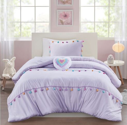 Tessa Tassel Lavendar Comforter Set - Twin Set Includes: 1 Comforter: 66"W x 86"L, 1 Standard Sham: 20"W x 26"L, 1 Decorative Pillow: 13"W x 13"L $101.25 USD