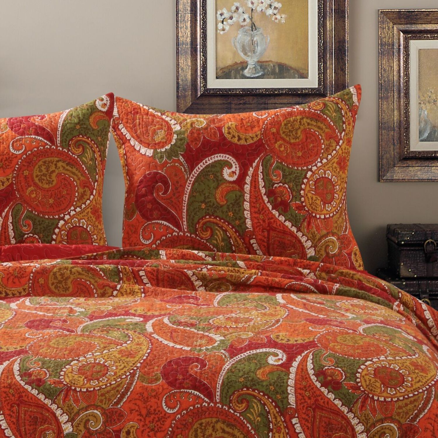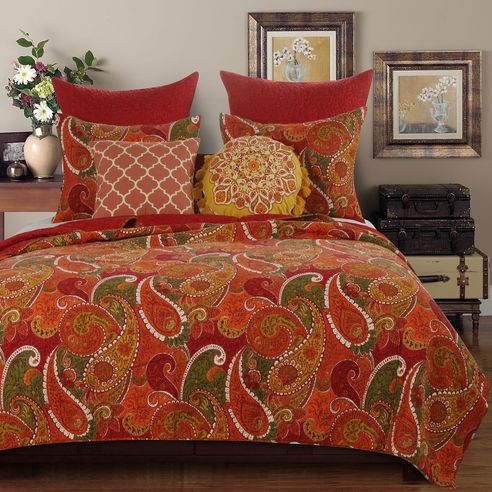 Tivoli Cinnamon by Greenland Home Fashions is a beauty in warm autumn tones. The perfectly scaled paisley pattern adorns the face of the Tivoli, while the reverse is a coordinating solid as the ideal finishing touch. Tivoli Cinnamon quilts are available in sizes Twin through King. Pillow shams, drapery, and decorative throw are also offered separately in the Tivoli Cinnamon design. Bedding is made of 100 percent cotton. Machine washable following manufacturers directions.