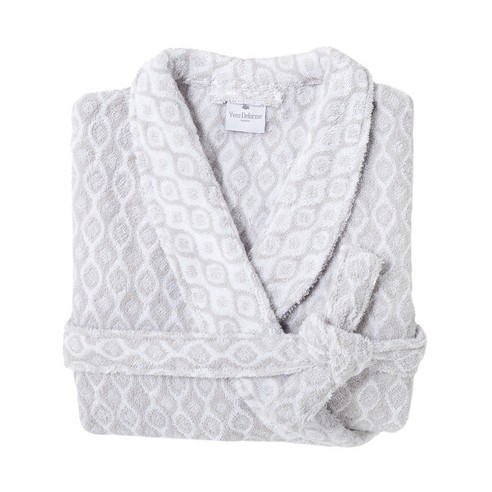 Volute by Yves Delorme Paris introduces a modern sense to your beautiful bath. The cool of the silver grey casts a contemporary design with its subtle style. Volute is made of 100 percent cotton, jacquard. The Volute collection offers bath sheets, towels, hand towels, and bath robes. Machine washable following manufacturers directions. Yves Delorme Paris is a Special Order collection made in France.