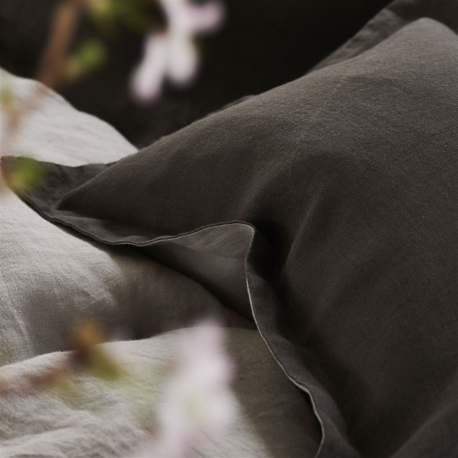 Biella Espresso & Birch by Designers Guild the charm of this lovely bedding is the appeal of natural linen presented in neutral yet dramatic hues. This design is 100 percent natural linen. Biella Espresso & Birch is available in Duvet Style Comforter Sets in size Full/Queen and King/California King and include the Duvet Cover, Duvet Insert, and Pillow Shams. Biella Espresso & Birch is also available in separates which include Full/Queen and King Duvet Covers, Pillow Shams in Standard, Queen, King, and Euro. Biella Espresso & Birch is machine washable following manufacturers directions.