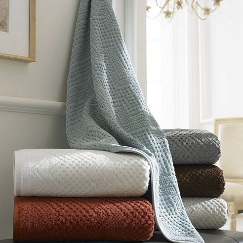 Chateau Towels by Kassatex Fine Linens is a luxurious addition to your bath. Beautiful 100 percent long staple Turkish cotton feature a textured design. Made in Turkey, these towels are piece dyed and offer a sewn in hanger loop. Available in bath, hand and wash towels, as well as a bath sheet and tub mat in your choice of six colors. Machine wash cold, tumble dry low-medium. Do not bleach. To preserve color please avoid cleansers with harsh chemicals including Benzoyl Peroxide.