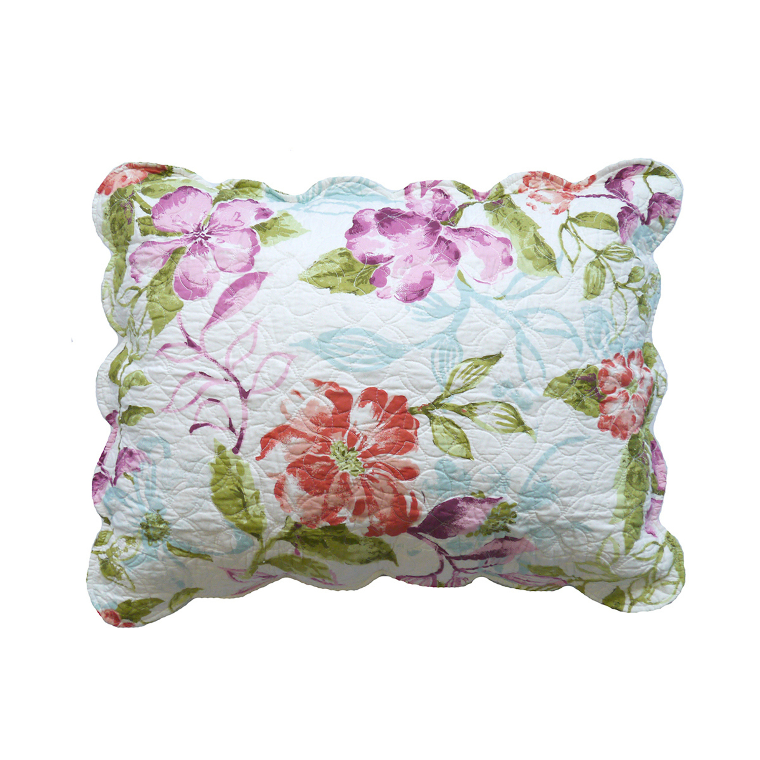 Clara by C&F Quilts creates the ideal summertime floral for your retreat. The greens, blues, pinks and purples of Clara are beautifully scattered over the quilt and shams. The scalloped edge treatment completes the design and is complimented by the green bedskirt and euro shams. The addition of your choice of decorative cushions adds the finishing touch. Made of 100 percent cotton, machine washable following manufacturers directions.