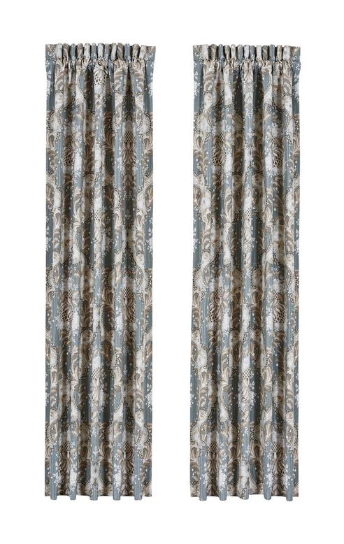 Crystal Palace by J Queen New York is a lovely traditional design in a perfect shade of French Blue. The floral design introduces the neutral within its lush and detailed styling. The main floral is a woven jacquard which is accented beautifully with a blue velvet, and a perfectly paired stripe. Crystal Palace comforter and pillow shams are finished with a decorative cording touch as the edge. The tailored bed skirt completes the comforter set beautifully and features the stripe design. Bedding sets are available in sizes from Queen to California King and include the comforter, matching pillow shams and bed skirt. Introduce the euro shams, which feature the stripe in a vertical setting on the face with solid velvet on the reverse, and are shown against the headboard, for an exceptional finishing touch. Crystal Palace offers three designer decorative cushions in Tufted round, Boudoir, and Square styles. The square cushion features the woven floral design, the boudoir cushion offers decorative trim accents and fabrics in a paneled design. Complete your bedroom with the introduction of coordinating drapery panels and waterfall valances. Crystal Palace is 100 percent polyester and dry clean care.