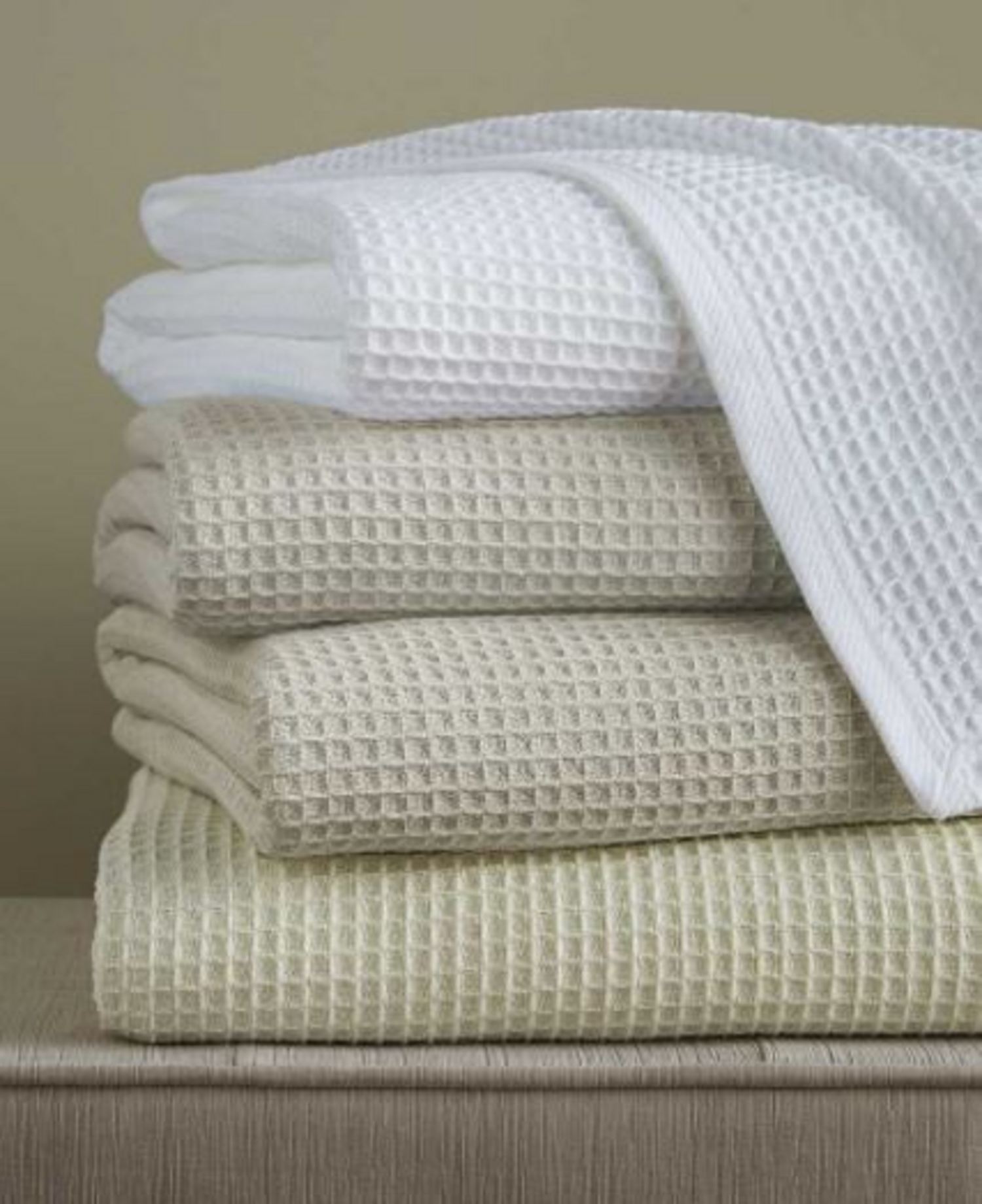 Kingston Waffle Blanket by Sferra Fine Linens adds warmth and softness to your bed beautifully. The classic waffle weave of the Kingston is the perfect layer for the cooler months. Kingston blankets are finished with a straight edge. Made of 100 percent Egyptian cotton and preshrunk. The Kingston collection is made in Portugal to exacting standards. Kingston is available in blankets from Twin to King. Your choice of colors including Ivory, Mushroom, White. Machine washable following manufacturers directions.