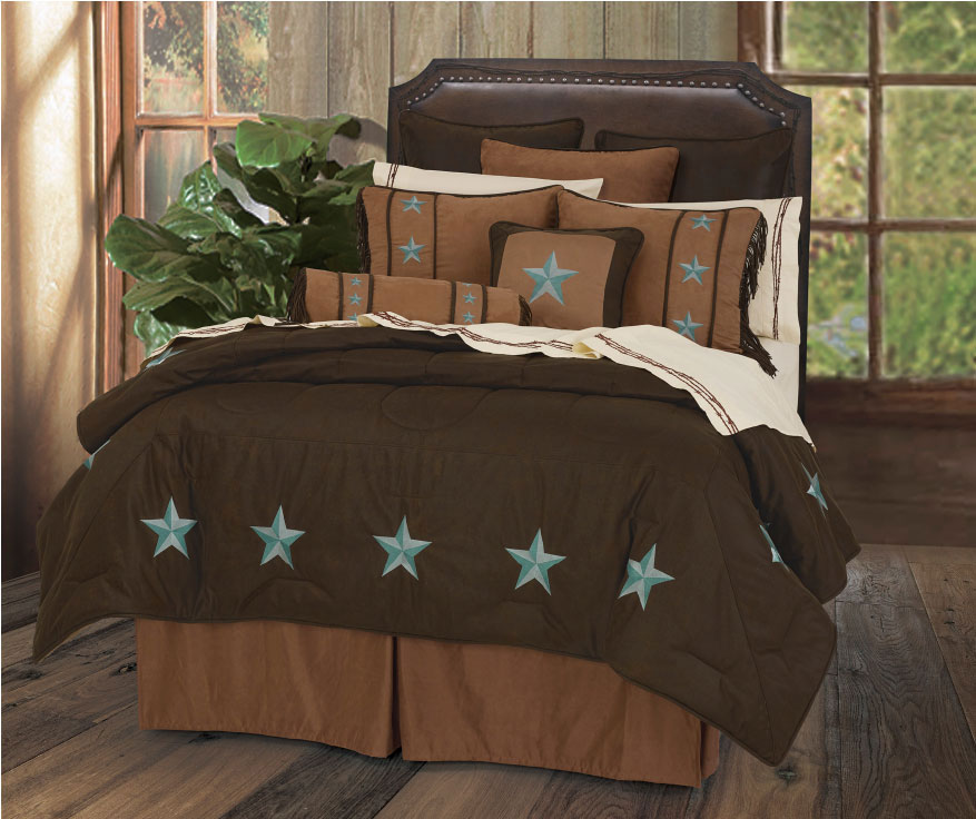 Just the right statement to make in any lodge, cabin or getaway bedroom, Laredo in Turquoise by HiEnd Accents HomeMax is warm, inviting and definitely a focal point for any space. The beautiful blends of light browns and turquoise blue work together in a perfect balance. The lovely star decor adds a hint of uniqueness to this set. Laredo in Turquoise by HiEnd Accents HomeMax offers additional decorative pillows and window treatments to complete your bedroom decor.