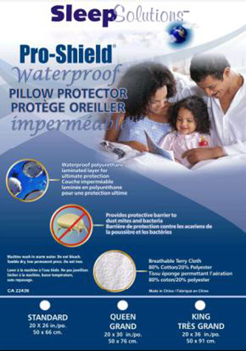 Pro-Shield Water Proof Pillow Protector make it easy to protect the most important parts of your bedding. These protectors help to eliminate dust mites, are clean and hygienic and can be machine washed, so up keeping is made simple for you. They have a convenient zipped closure feature which makes it easy to remove them for a wash. Pro-Shield Water Proof Pillow Protector are available in Standard, Queen or King sizes. They are made of a combination of cotton and polyester and have a terry cloth top.
