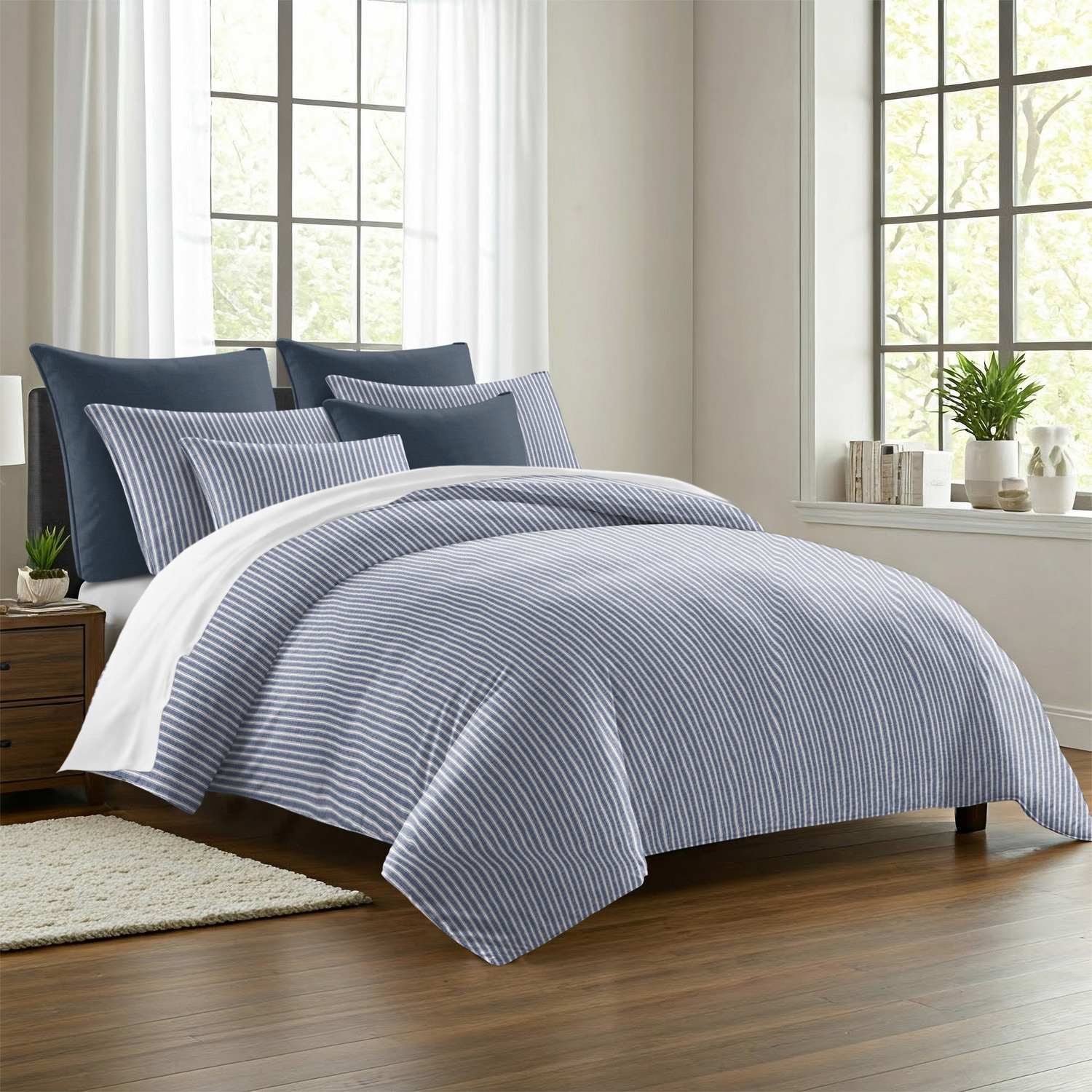 Walker Ticking Stripes Indigo/White Twin Duvet Cover 2PC Set