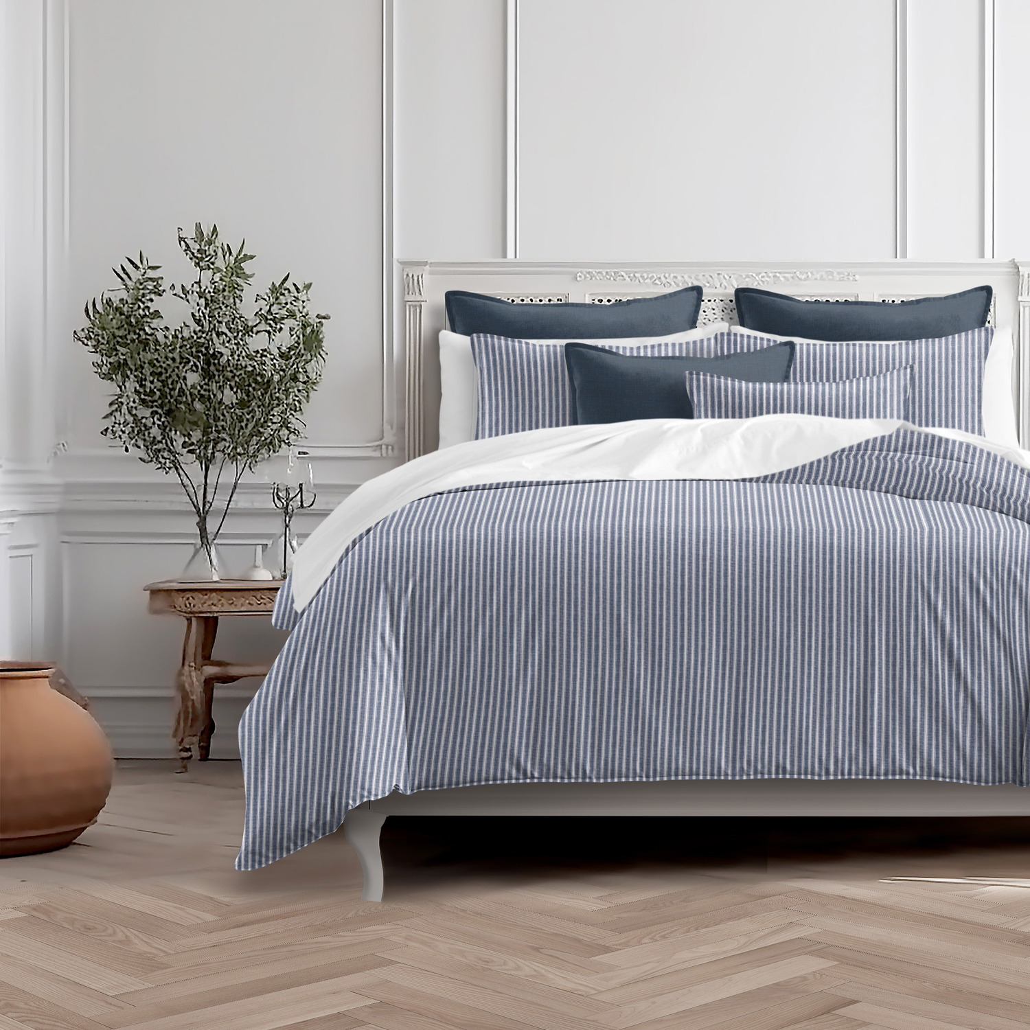 Walker Ticking Stripes Indigo/White Super Queen Duvet Cover 3PC Set