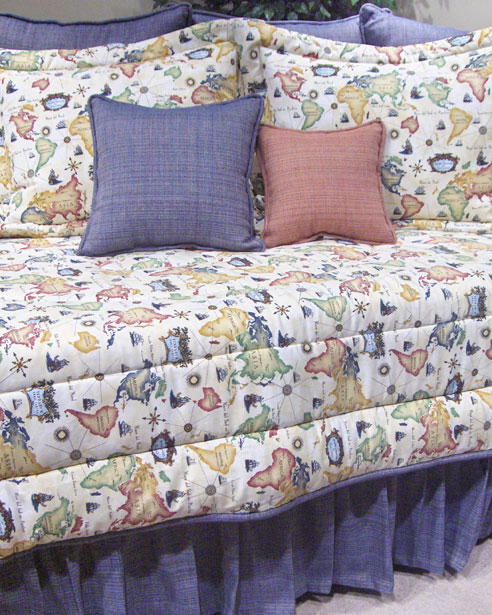 A fun, yet informative bedding choice for the creative soul in your home. Maps by Wilk Textiles is playful, bright and unique. The cool colors are perfect to blend into your existing design scheme. A transitional design that will be loved for years, and sure to be the focal point in your space. Maps by Wilk Textiles is made of 100% cotton for a super comfortable feeling. It's available in a Twin, Full, Queen and King size. Coordinating window treatments are also an option for a fun way to spread the look throughout the room.