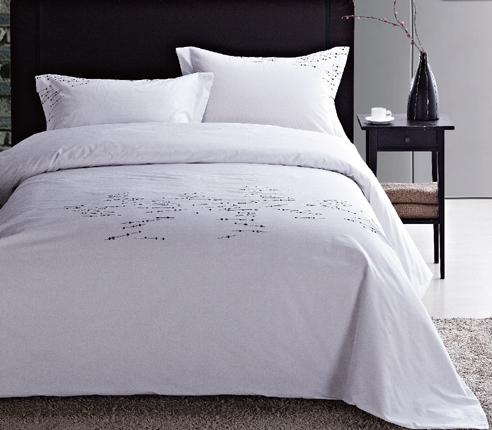 A luxurious 100% cotton duvet in white with silver and black geometric design that reverses to white. Perfect for any modern design.
