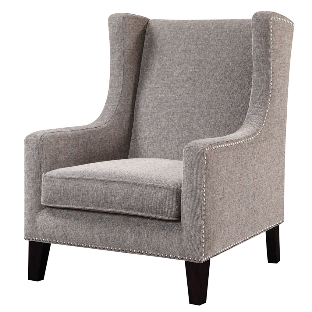 Madison Park Biltmore Accent Chair. A classic wingback style chair finished in a neutral color for years of enjoyment. The added detail of nail head trim helps define the styling of the chair. Available in four colors. Dimensions are 30.3" Width x 33.9" Depth x 40.9" Height