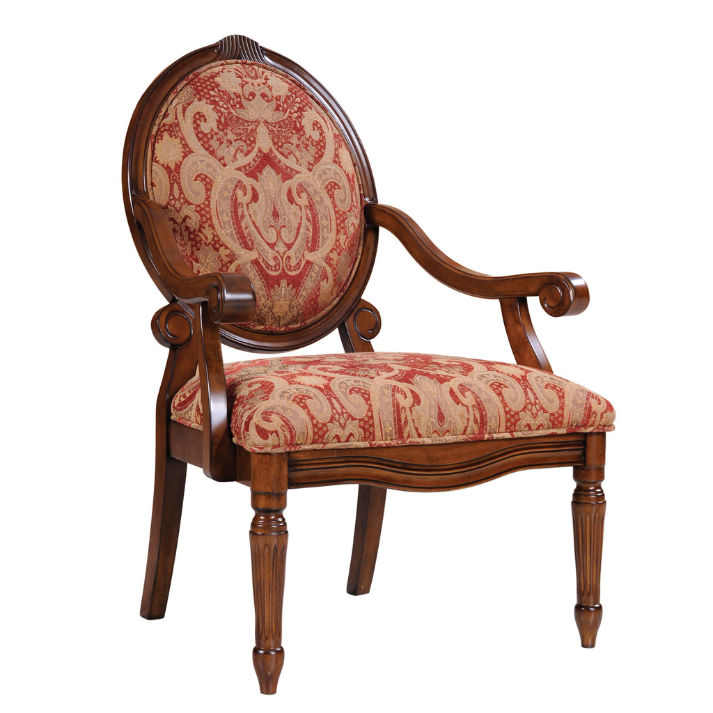 Madison Park Brentwood Accent Chair Two. A stylish and elegant accent chair with rich red medallion chenille jacquard fabric and birch wood. An aged finish for maximum coordination with your existing woods in the home. A wonderful addition to any home as an office or occasional chair. Dimensions are 27" Width x 28.5" Depth x 40.25" Height.