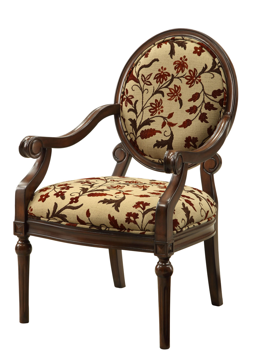 Madison Park Covington Accent Chair Two. This hand carved chair with floral fabric seat and back adds a dignified style to any elegant home. Rich colors and details such as the nail head trim come together for a beautiful result. Dimensions are 27.75" Width x 24.5" Depth x 38.75" Height