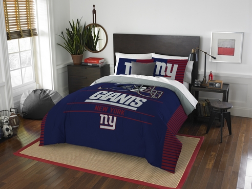New Your Giants Draft by The Northwest Company shows off the bold team colors of the Giants with the team logo in the center. Made of 100% Polyester and machine washable. The New York Giants Draft comforter set is available in Twin Set (Comforter and Sham) and Full/Queen Sets (Comforter and 2 Shams).