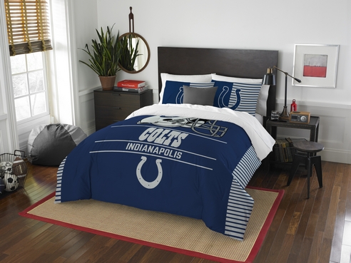Indianapolis Colts Draft by The Northwest Company shows off the bold team colors of the Colts with the team logo in the center. Made of 100% Polyester and machine washable. The Indianapolis Colts Draft comforter set is available in Twin Set (Comforter and Sham) and Full/Queen Sets (Comforter and 2 Shams).