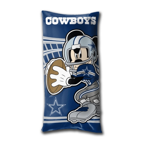 Dallas Cowboys Mickey Folding Body Pillow combines team spirit with adorable Mickey for the youngest fans. The bold colors and Mickey in uniform of your favorite team make the Folding Body Pillow a fun addition to your home. The pillow features hook and loop straps to allow you to fold the pillow to provide a comfortable way to double up the cushion. Made of 100 percent polyester fabric and fill. Spot clean.