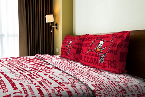 Tampa Bay Buccaneers Anthem Sheet Set by The Northwest Company will complete the look of your sporty room. Featuring the Buccaneers Logo on a white background this sheet set is 100% Polyester and machine washable. The Tampa Bay Buccaneers Anthem Sheet Set includes a fitted sheet, flat sheet, and pillowcase(s).