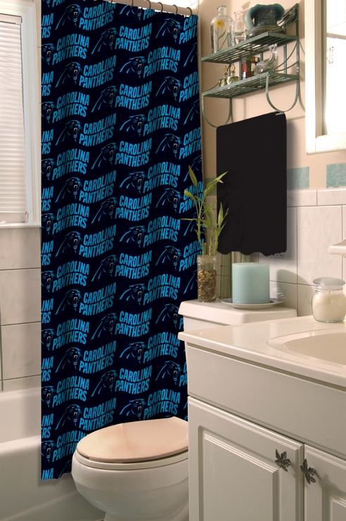 Carolina Panthers Shower Curtain by The Northwest Company is a bold addition to your bathroom and is perfect for the most enthusiastic fan. The team color becomes the background with the team name and logo repeating over the entire curtain. Made of 100 percent polyester and machine washable.