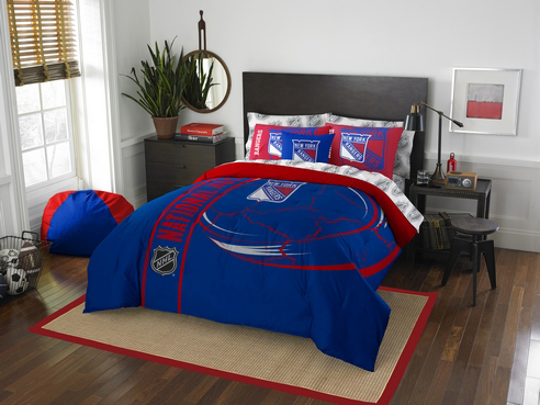 New York Rangers Soft & Cozy Comforter Set by The Northwest Company allows you to be the number 1 fan while still in bed. This set features a large Rangers logo in the center and is offered in Twin and Full/Queen complete bedding sets that includes comforter, sham(s), flat sheet, fitted sheet, pillowcase(s) or Twin and Full/Queen comforter sets that include the comforter and sham(s). New York Rangers Soft & Cozy is 100% Polyester and machine washable.