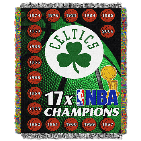 Boston Celtics Commemorative Series Throw by The Northwest Company is perfect to use as a thow or to hang as a decorative tapestry and features the successes of the organization. The Commemorative Series Throw is 48”x 60”, 100% Polyester, and machine washable.